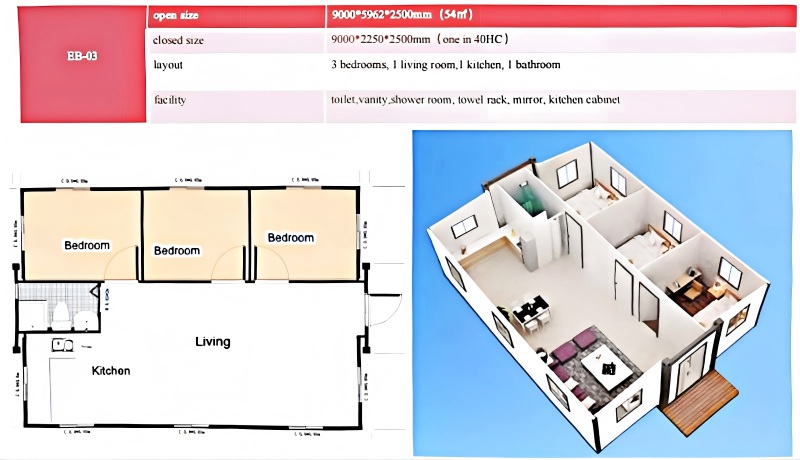 It’s a ready-to-use modular house that expands on-site within hours, offering more space and comfort than standard container homes.