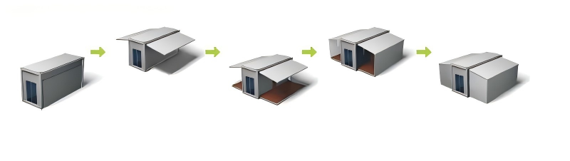 It’s a ready-to-use modular house that expands on-site within hours, offering more space and comfort than standard container homes.